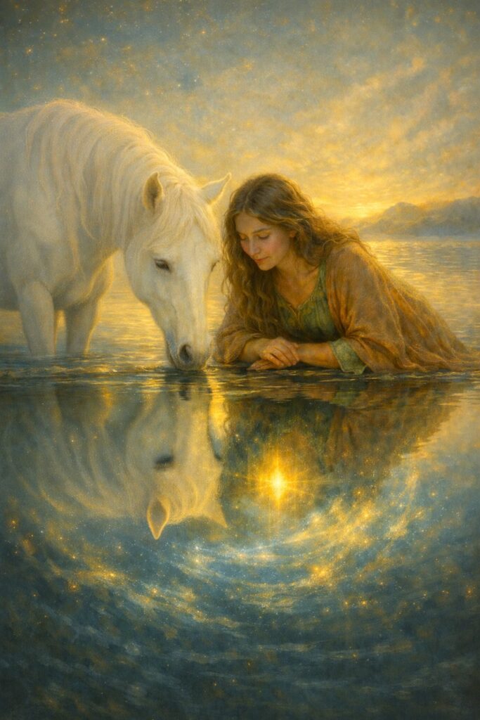 Am 26.02.2026 beginnen wir das Neue Modul „Goldener Seelenraum“ – hier geht es tief in die Verkörperung deiner goldenen Schöpfungskraft mit Pferden.